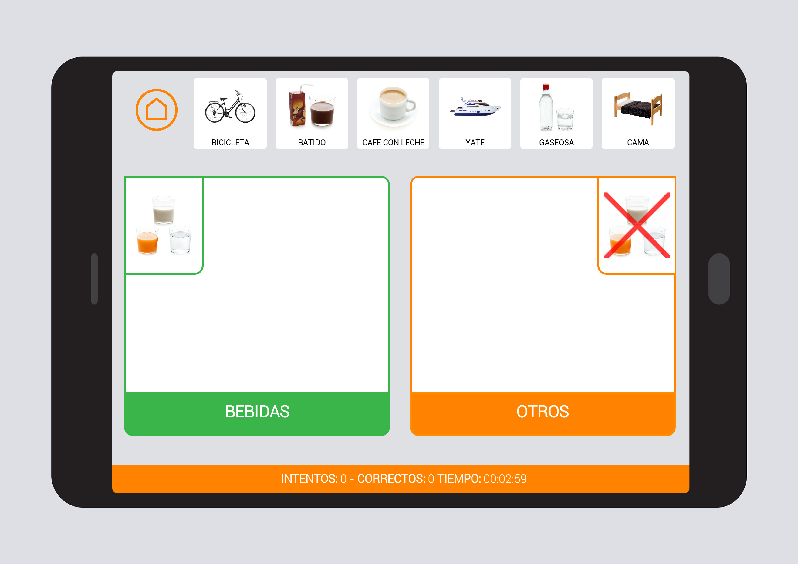Clasificación y categorización - Bebidas. Conjunto de actividades diseñadas para potenciar y favorecer el desarrollo del vocabulario básico y la identificación / evocación de palabras que están relacionadas por su significado, compartiendo ciertas características comunes o referenciales.