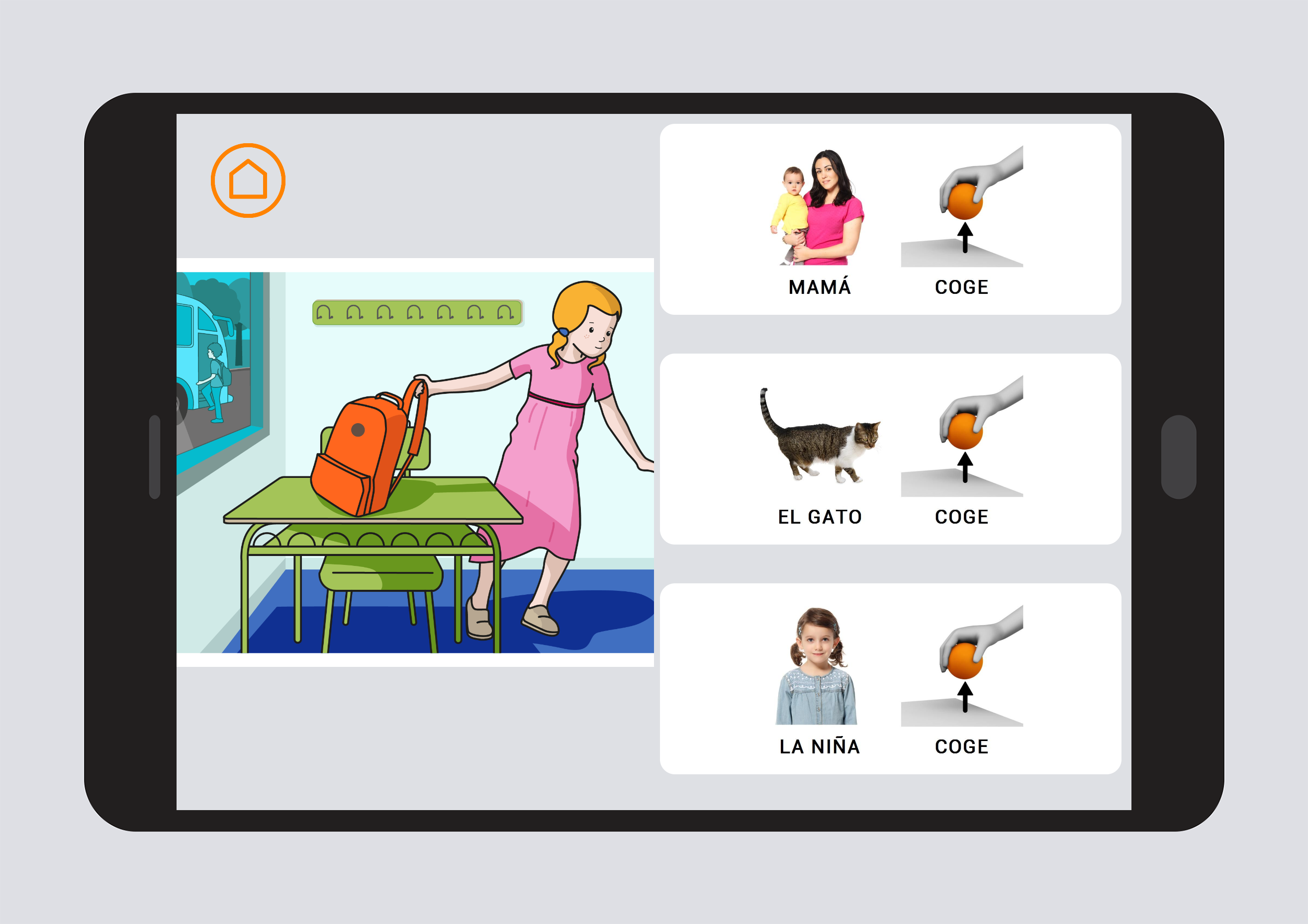 Paquete de ejercicios de nivel 0 para construir frases con Sujeto+Verbo del verbo "coger".