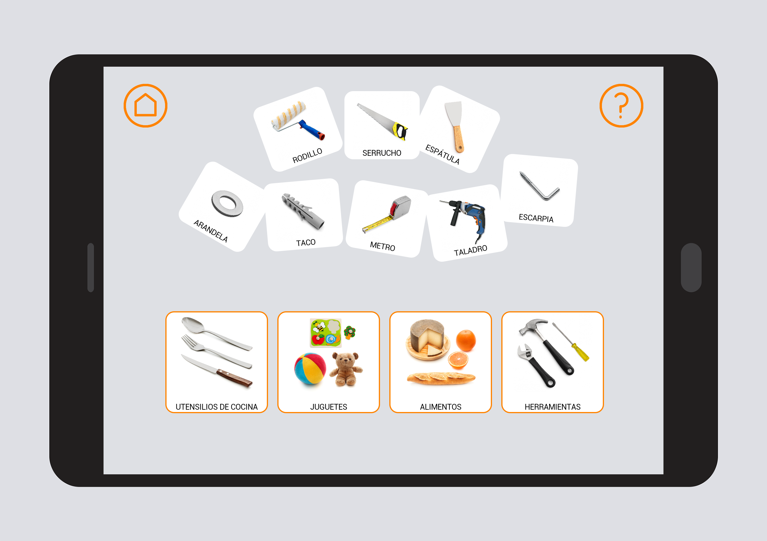 Clasificación y categorización - Herramientas. Conjunto de actividades diseñadas para potenciar y favorecer el desarrollo del vocabulario básico y la identificación / evocación de palabras que están relacionadas por su significado, compartiendo ciertas características comunes o referenciales.