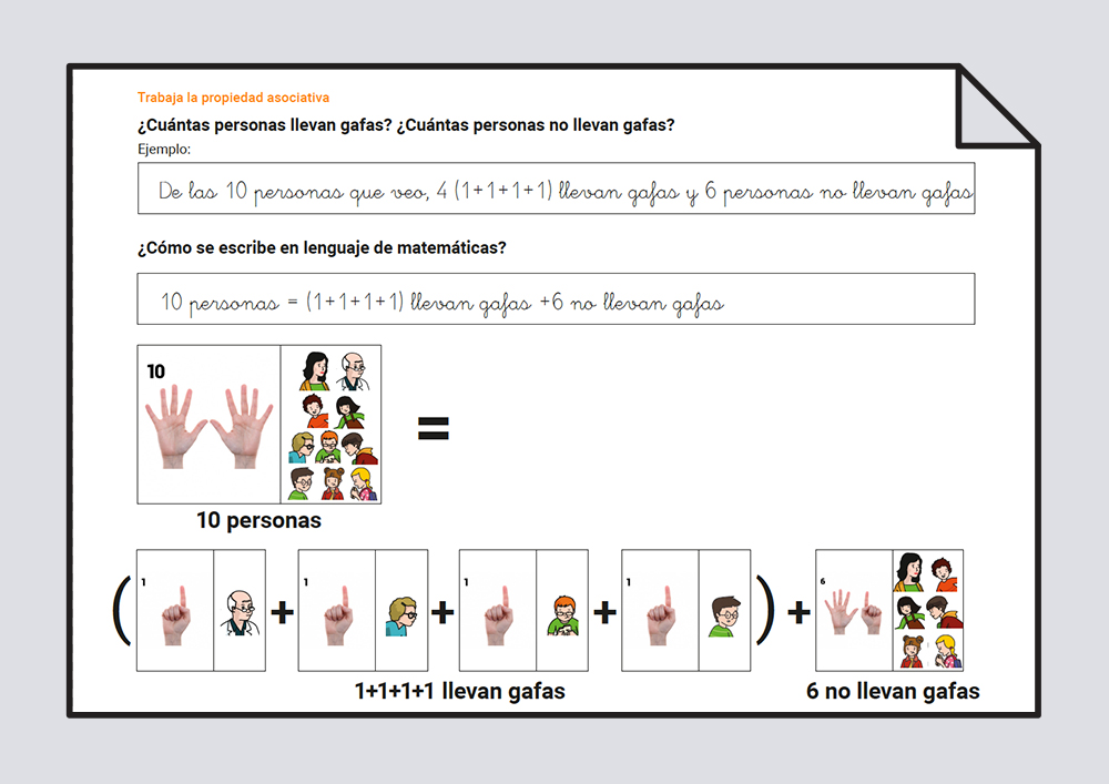 Material para trabajar las propiedades conmutativa y asociativa de la suma a partir de una escena ilustrada. Observando los personajes que aparecen en esta escena se pueden crear grupos con características comunes. La conmutativa es una propiedad muy importante de la suma y dice que cuando tienes que resolver una suma, no importa el orden en el que coloques sus sumandos, ya que siempre se obtiene el mismo resultado. La propiedad asociativa de la suma indica que la forma en que se juntan los sumandos no incide en el resultado de la operación.