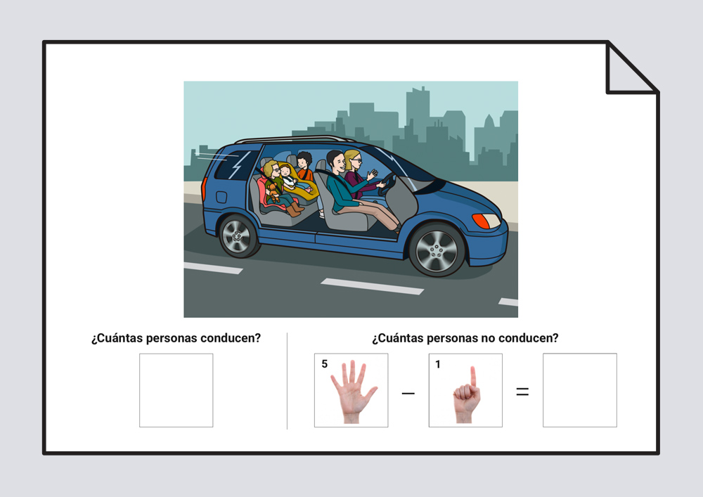 Material para aprender a restar con elementos visuales que aparecen en una lámina ilustrada.