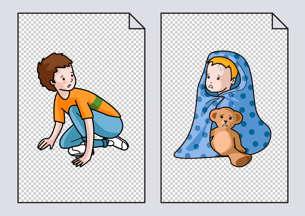 La biblioteca de expresiones es un conjunto de ilustraciones, facilitadas en formato PNG de alta resolución y con fondo transparente. Los usuarios de este tipo de materiales podrán utilizar cada personaje y situarlo en cualquier fondo o contexto para crear diseños personalizados. El material está compuesto de 17 ilustraciones.