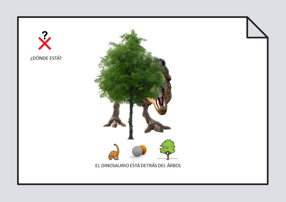 Conjunto de materiales para identificar y aprender los conceptos básicos espaciales (delante, detrás y al lado) utilizando pictogramas de ARASAAC y fotografías de #Soyvisual.