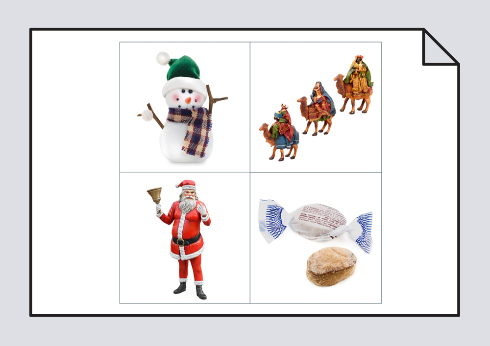 Cuadernillo de vocabulario básico entorno a la Navidad. Consta de imágenes y palabras, y junto a ellas un hueco para encontrar los iguales.