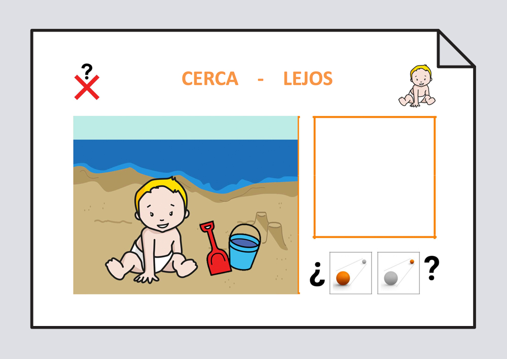 Conjunto de materiales para identificar y aprender los conceptos básicos espaciales (dentro-fuera, encima-debajo, cerca-lejos, etc) utilizando pictogramas de Arasaac y recursos de #Soyvisual (láminas y fotografías).