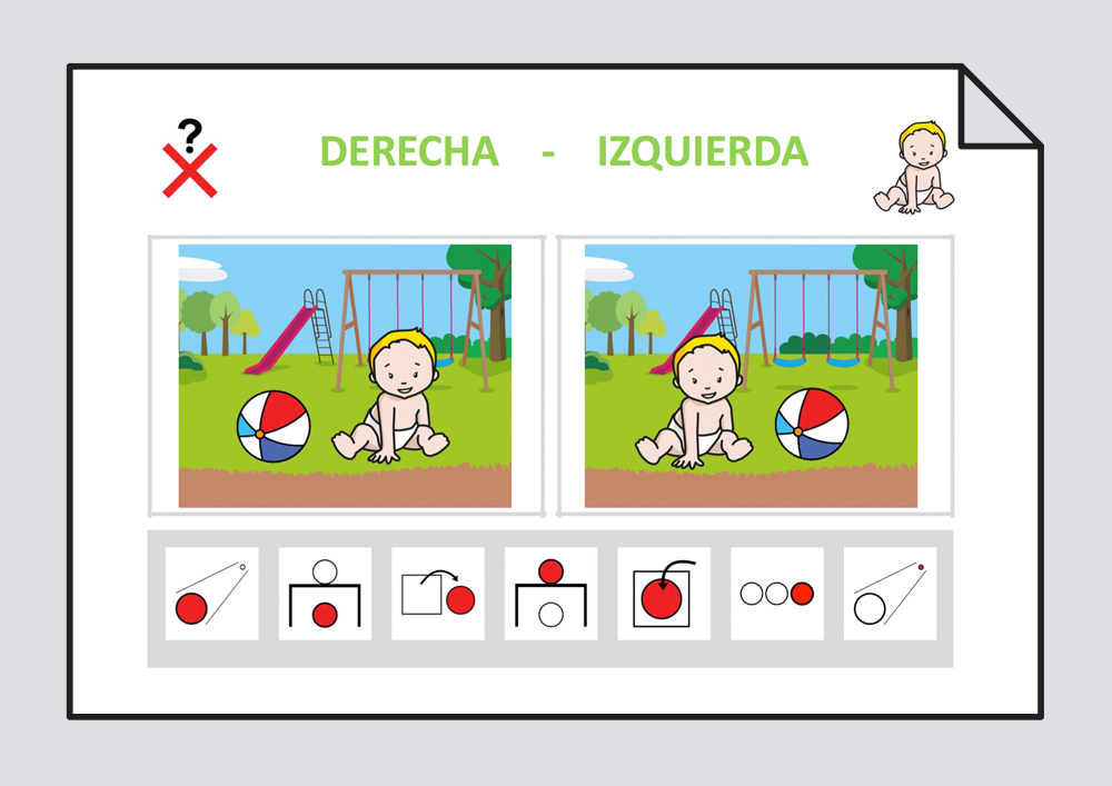 - Nivel básico: Se presenta una lámina con una posición determinada y se elige el concepto básico correcto entre las distintas tarjetas recortadas para colocar la correcta en el recuadro vacío.