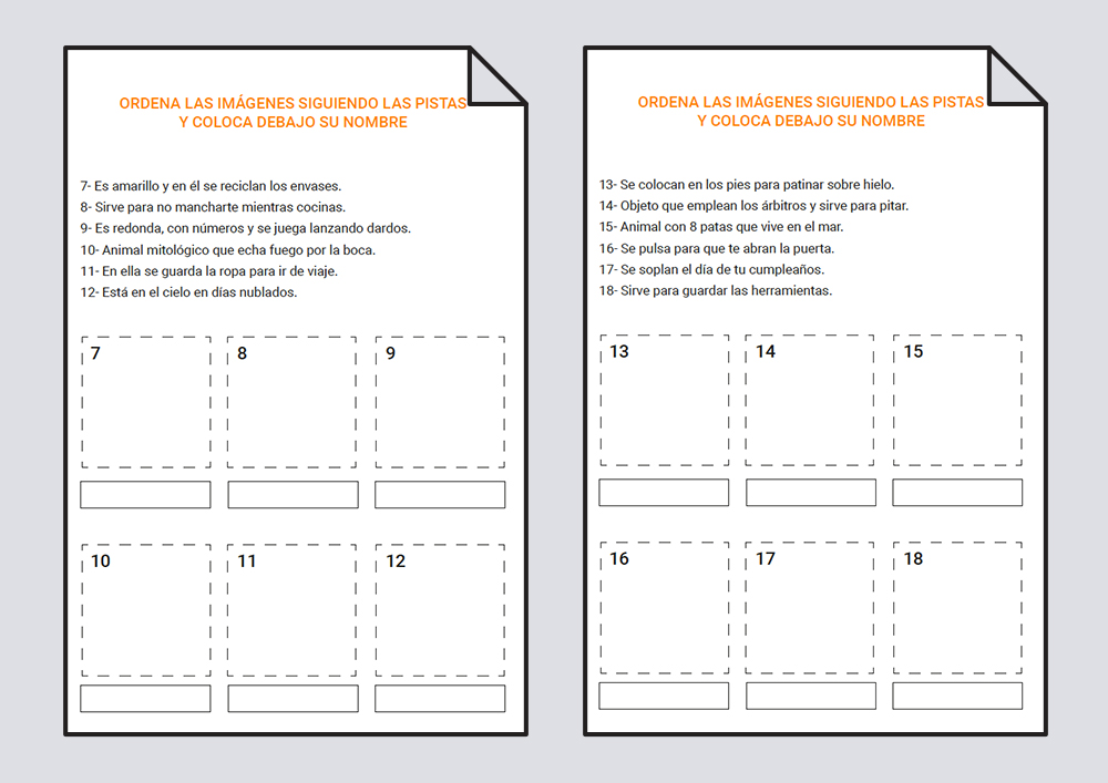Al final del documento, encontraremos las fotografías referidas a cada una de las descripciones, para recortar y pegar en el lugar correspondiente.