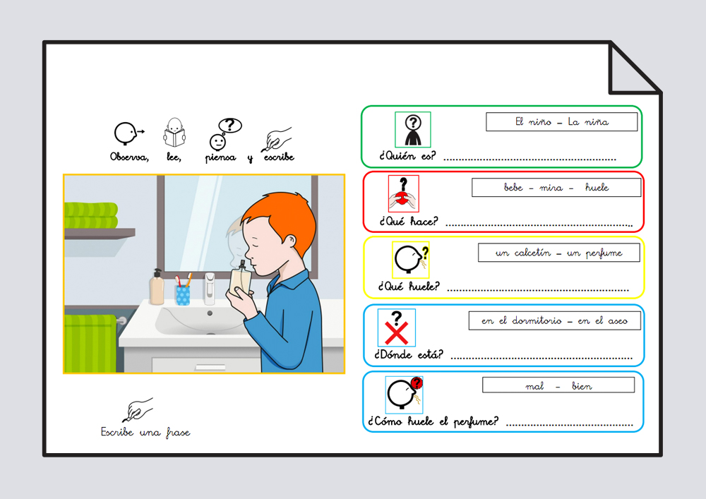 Material para trabajar comprensión / expresión oral y lectoescritura. Verbo Oler