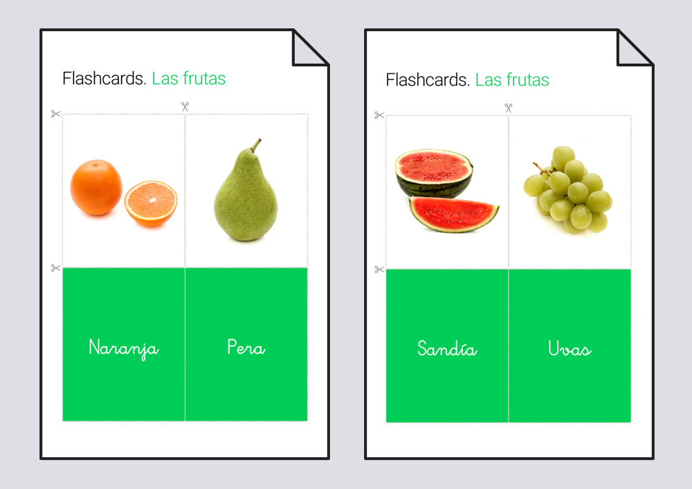 Estas flashcards están preparadas para ser impresas. La forma más cómoda de imprimirlas es utilizando papel fuerte, que recortaremos y luego pegaremos. Si se quiere conservar para múltiples ocasiones se recomienda plastificar cada tarjeta.