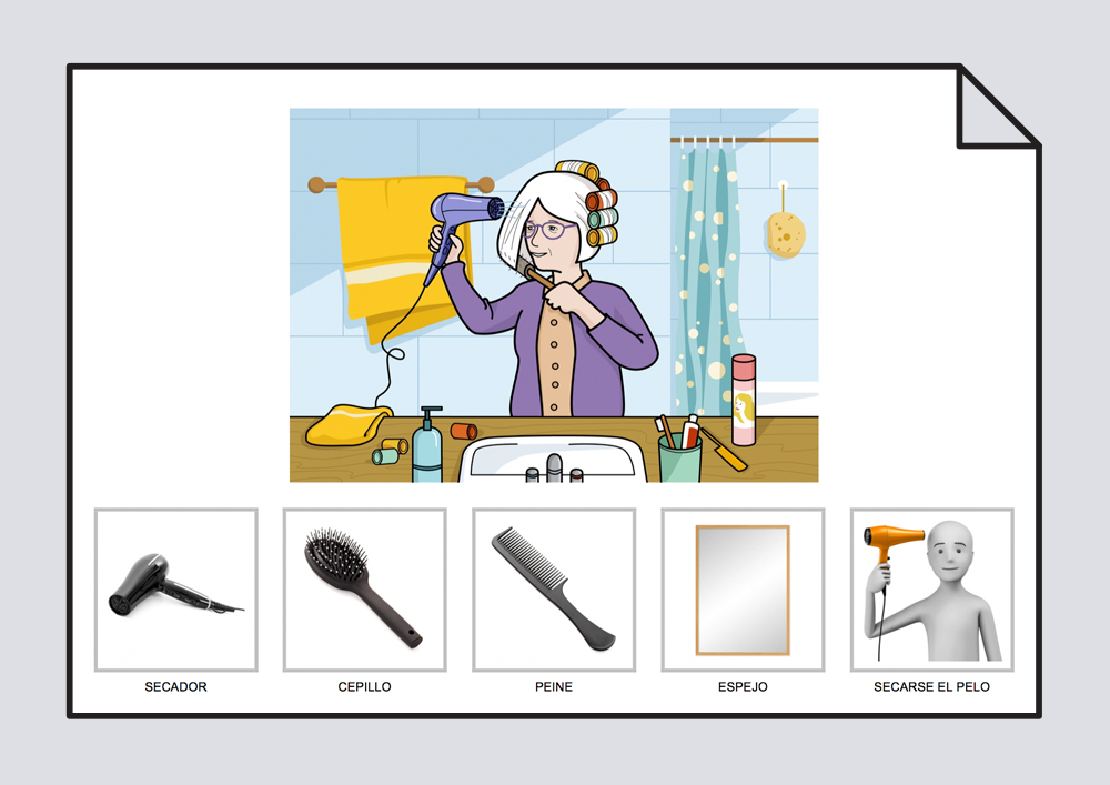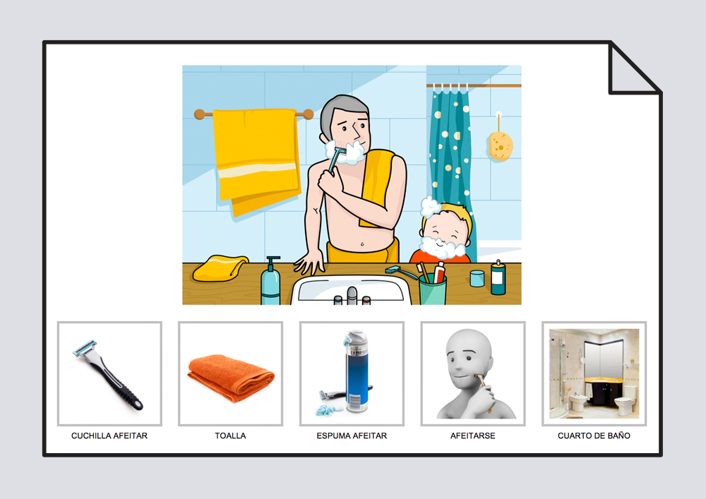 Material para trabajar el vocabulario relacionado con la higiene personal a través de láminas y fotografías. Verbos relacionados: afeitarse, cepillarse los dientes, lavarse las manos, secarse la cara y secarse el pelo.Exercice traduit en français.Exercício traduzido em português.