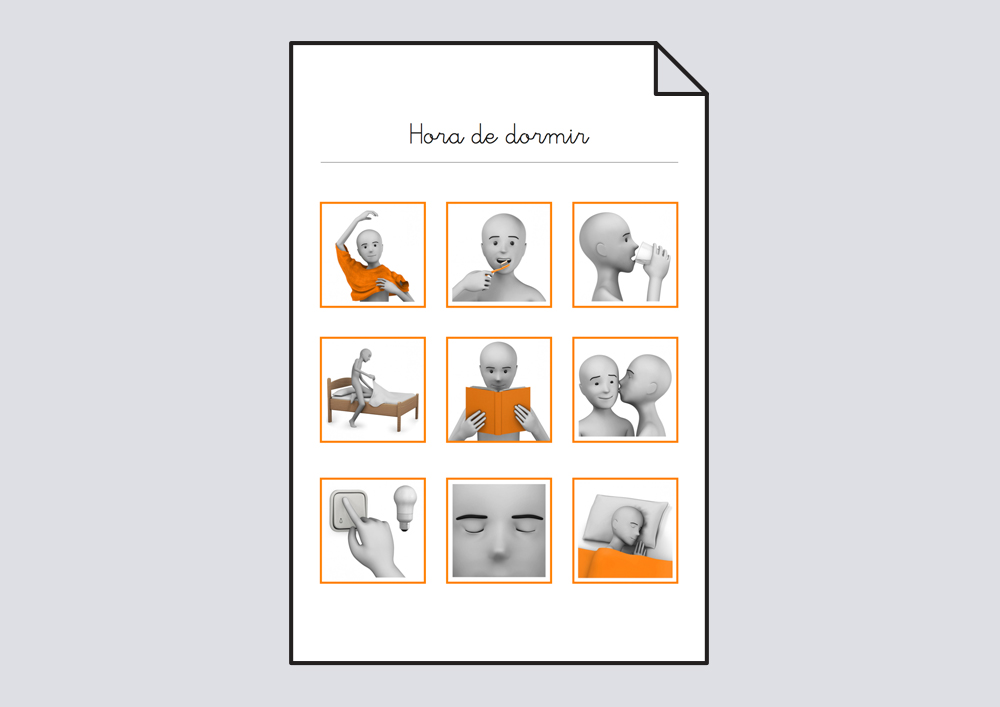 Tableros con los distintos momentos que conforman la rutina de ir a dormir para anticipar y preparar este momento especial y, en la medida de lo posible, evitar rabietas o conductas disruptivas.