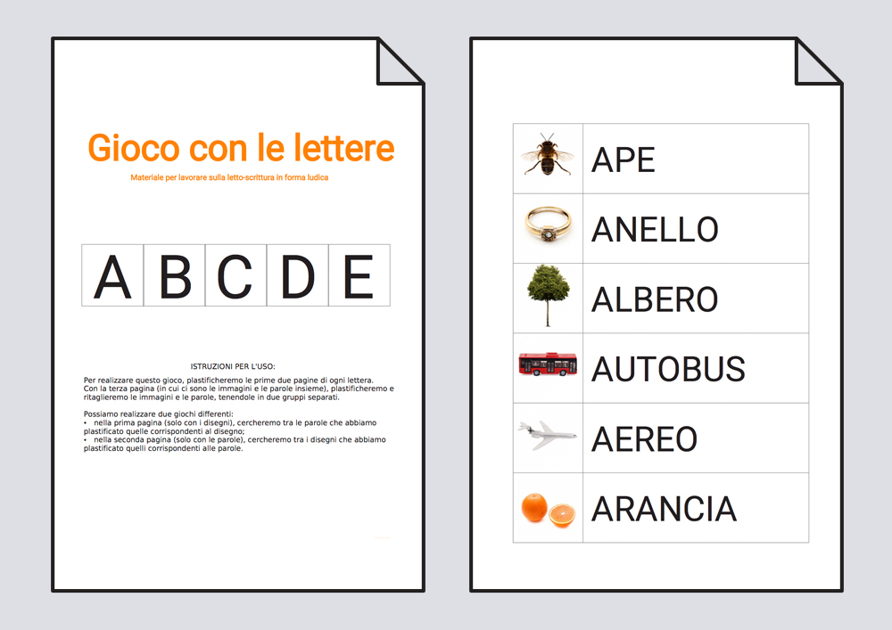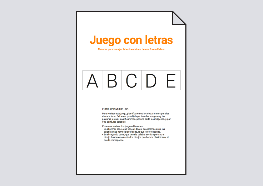 Material para trabajar la lectoescritura de una forma lúdica con palabras que empiezan por las letras A, B, C, D y E.