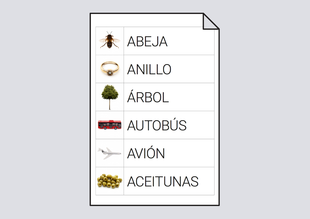 - En el segundo panel, que tiene la palabra escritra pero no el dibujo, buscaremos entre los dibujos que hemos plastificado, el que le corresponde.