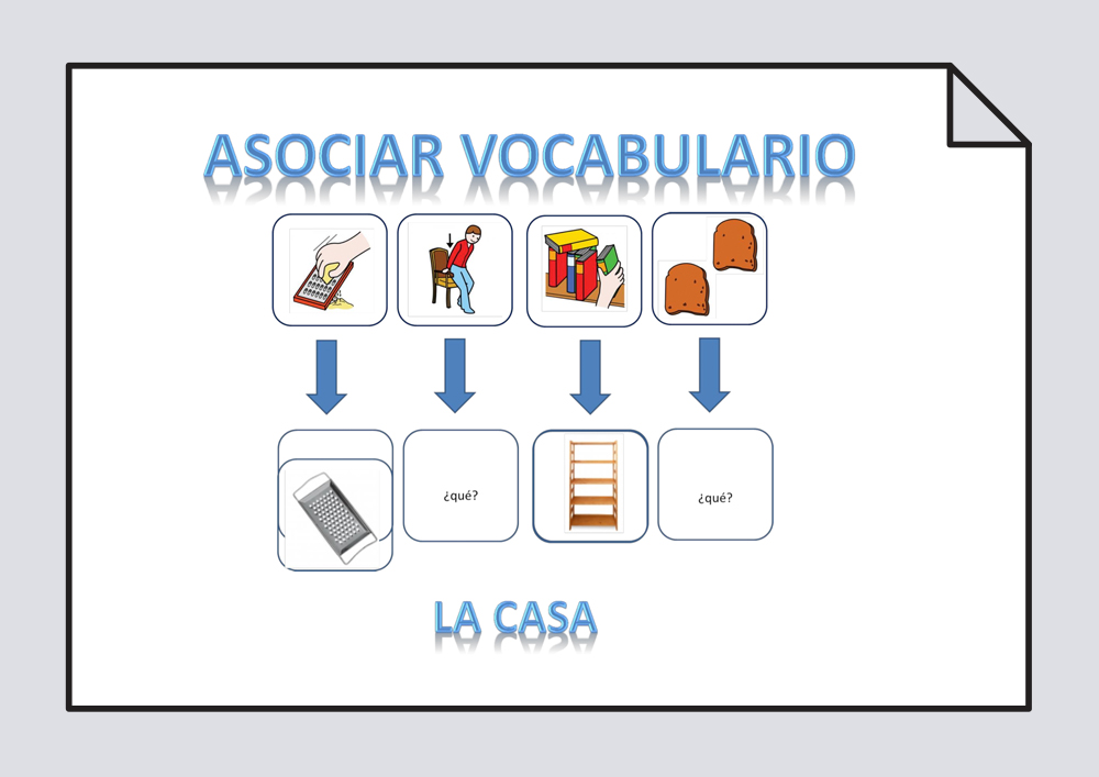 Este material se ofrece una serie de plantillas que permiten al niño asociar distintos elementos del vocabulario de la casa, y explicar el porqué de esta relación, o simplemente colocar y nombrar. Depende del nivel que tenga cada niño/a.