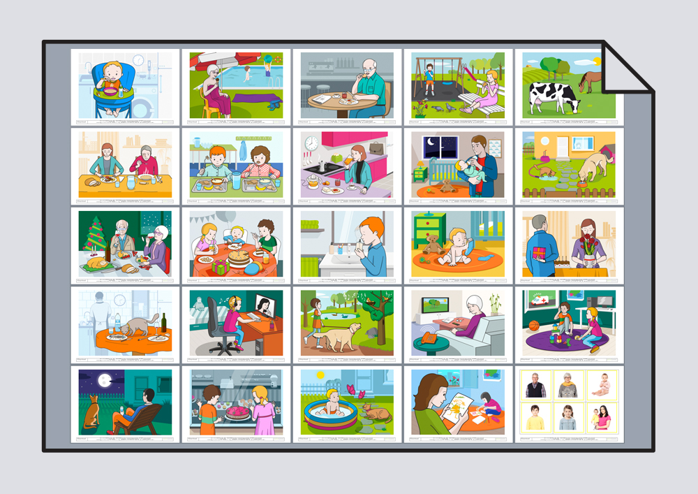 Para utilizar correctamente el material, deberemos imprimirlo, plastificarlo y recortar todos los elementos (láminas, pictogramas, fotos y textos).