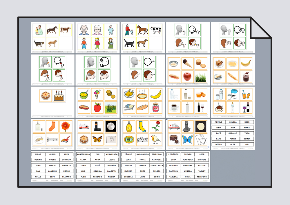 El objetivo principal es mostrar una lámina y construir la frase con todos los elementos en función del nivel de lenguaje de nuestros usuario. Adjuntamos unas capturas a modo de ejemplo de uso para que visualicéis una forma posible de trabajo.