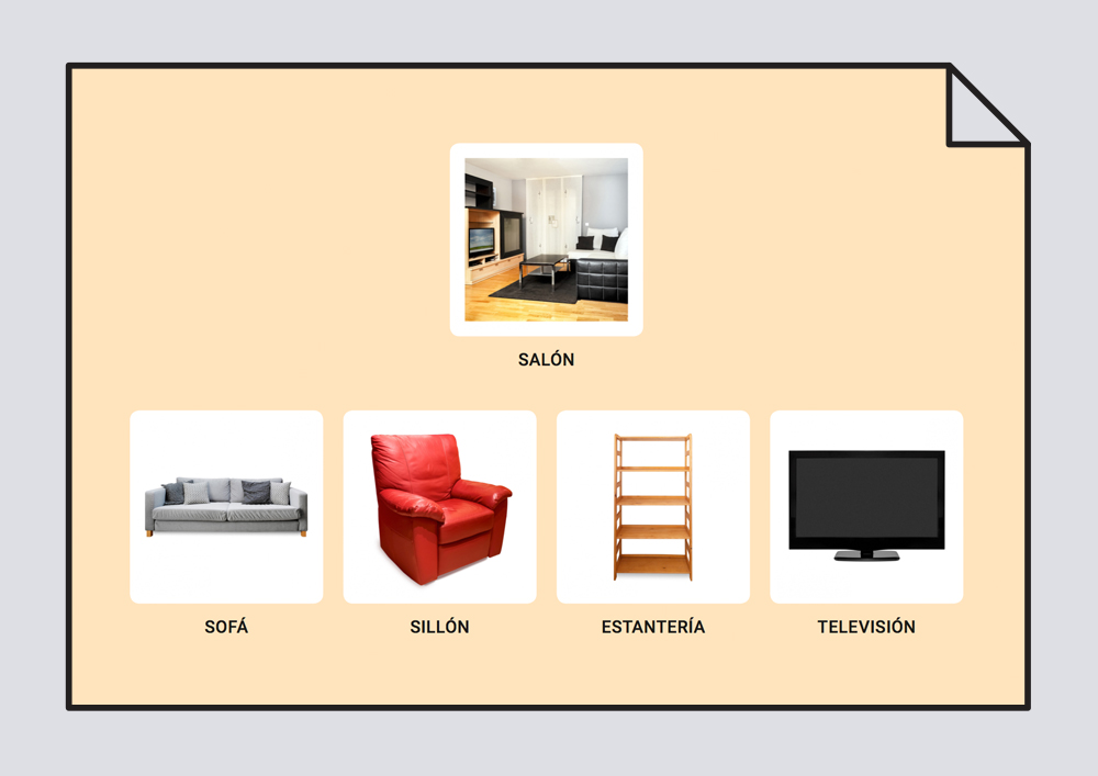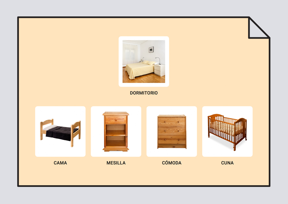 Cuaderno de comunicación sobre los muebles, en el que podemos aprender vocabulario asociado a lugares concretos.