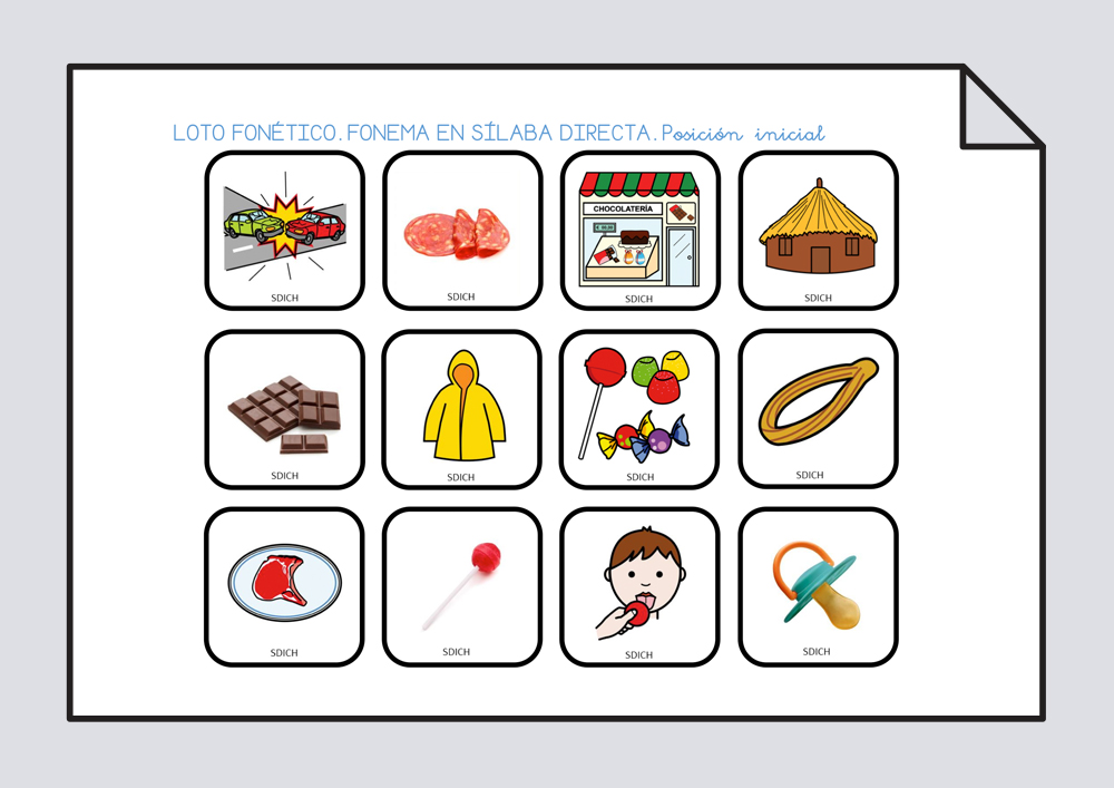 Lotos fonético-fonológicos para trabajar el fonema CH. Se ofrecen en dos versiones:
