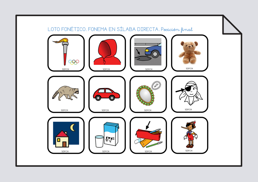 Al final de los lotos agrupados hay unas plantillas, para plastificar o meter en algún tipo de funda para trabajar y clasificar fonemas según lo que queramos trabajar, y en la posición que queramos.