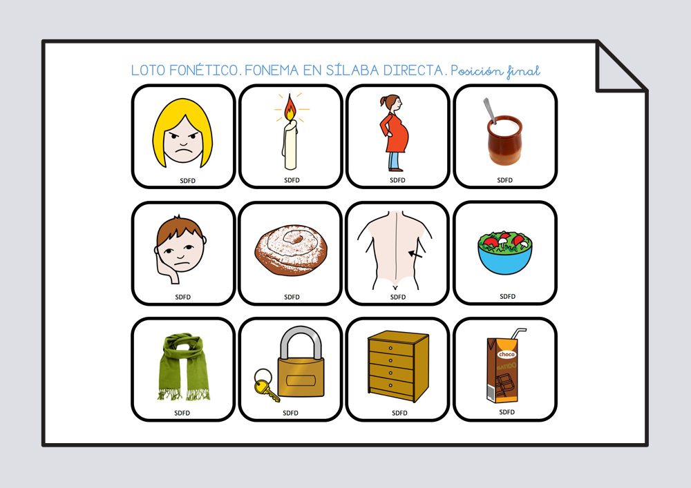 Lotos fonético-fonológicos para trabajar el fonema D. Se ofrecen en dos versiones: