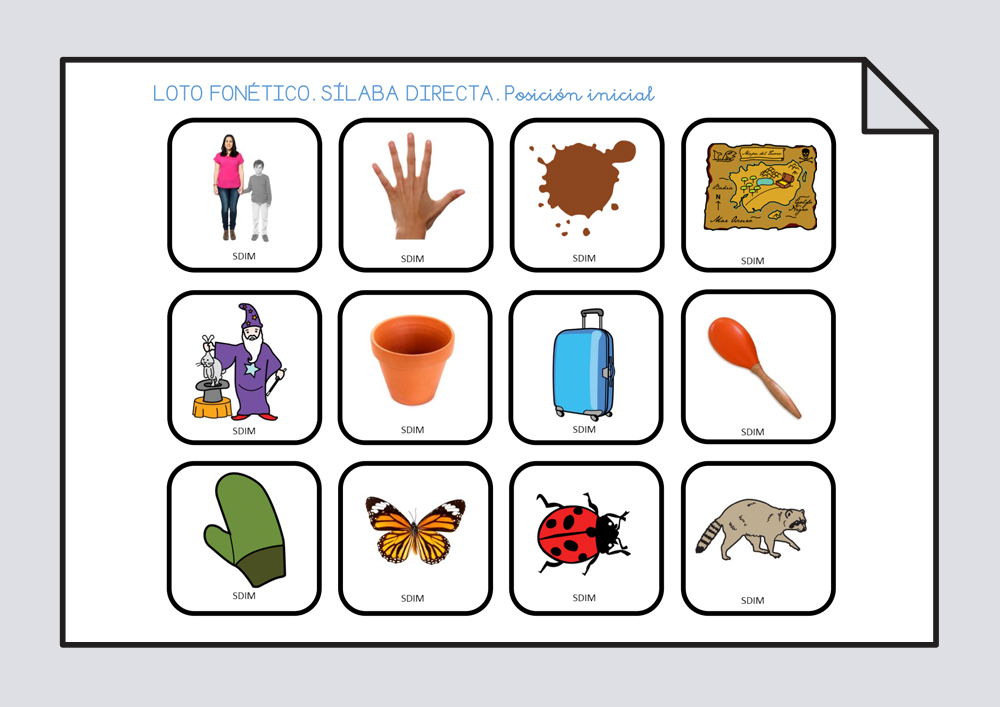 Lotos fonético-fonológicos para trabajar el fonema M. Se ofrecen en dos versiones: