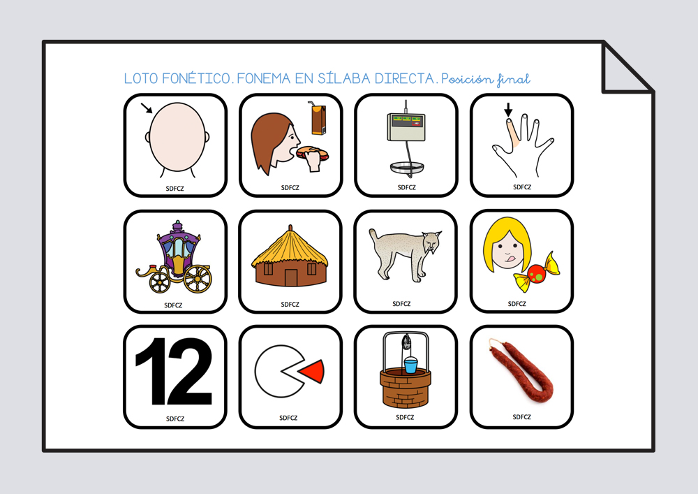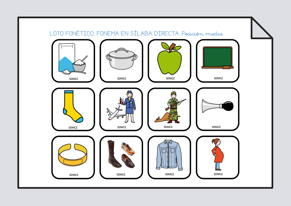 Al final de los lotos agrupados hay unas plantillas, para plastificar o meter en algún tipo de funda para trabajar y clasificar fonemas según lo que queramos trabajar, y en la posición que queramos.