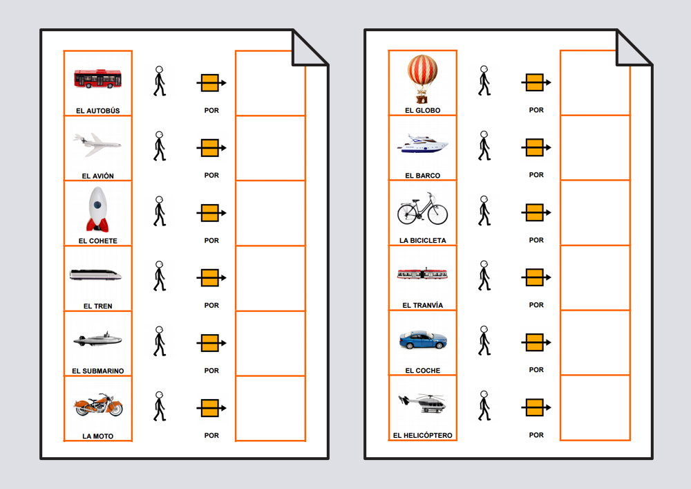 Actividad realizada con fotografías de #Soyvisual y pictogramas de Arasaac para identificar por dónde circulan diferentes transportes.