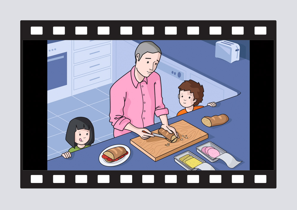 Material para trabajar preguntas y respuestas de la vida cotidiana en torno a la escena que ocurre en una lámina ilustrada. Está pensado para que el alumno vea el vídeo y el profesor / educador le vaya haciendo preguntas sobre lo que ocurre en la escena.