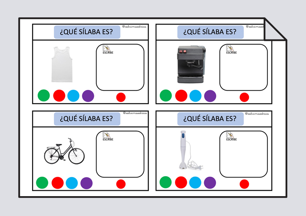 Conjunto de tarjetas para trabajar la conciencia silábica en palabras tetrasílabas con apoyos visuales. Material para trabajar la conciencia silábica.