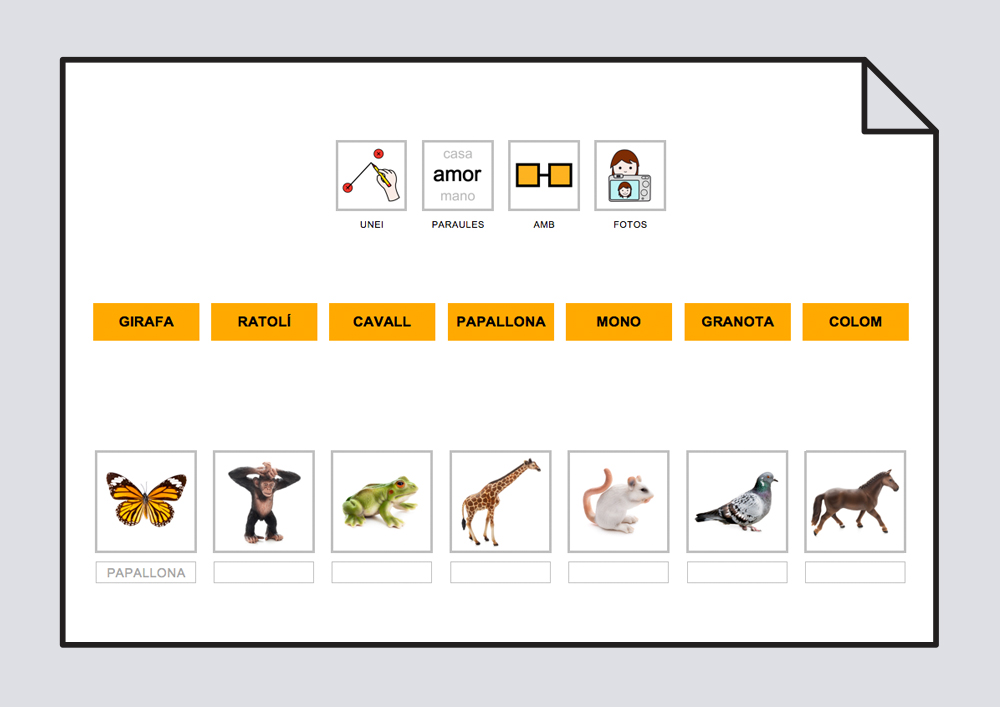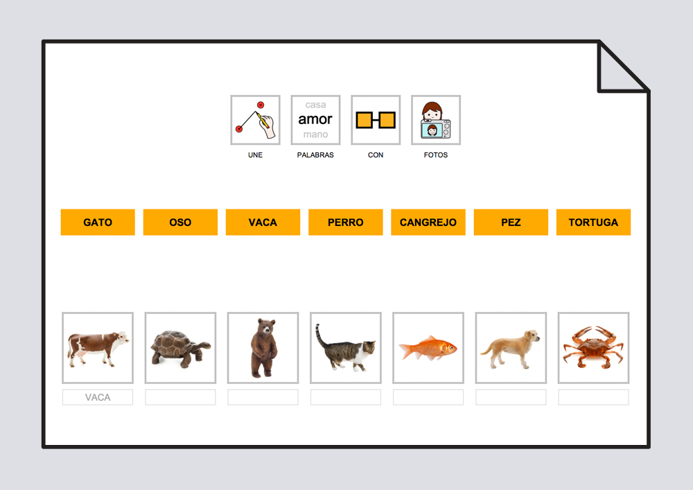 Relaciona texto con fotos y pictogramas. Animales