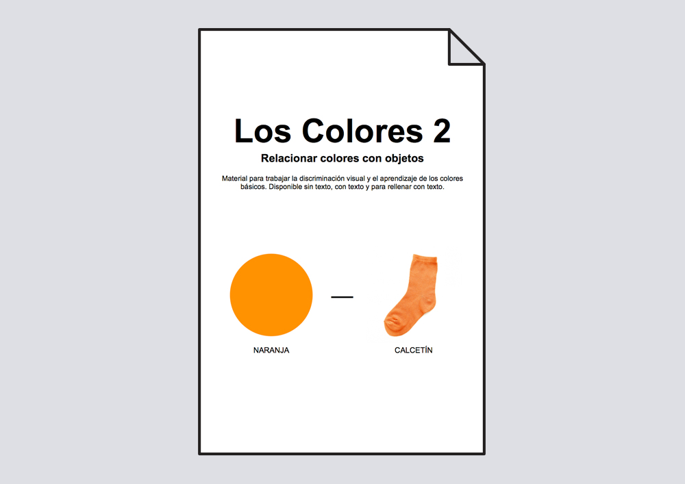Material para trabajar la discriminación visual y el aprendizaje de los colores básicos. El material está disponible sin texto, con texto y para rellenar con texto.