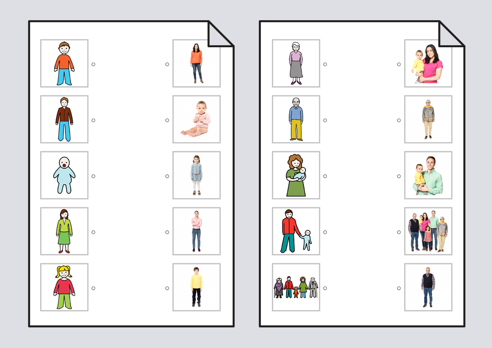 Actividad para identificar y relacionar el pictograma y la fotografía correspondiente sobre las personas.