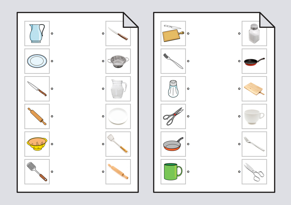 Relacionar utensilios de cocina: pictogramas-fotografías