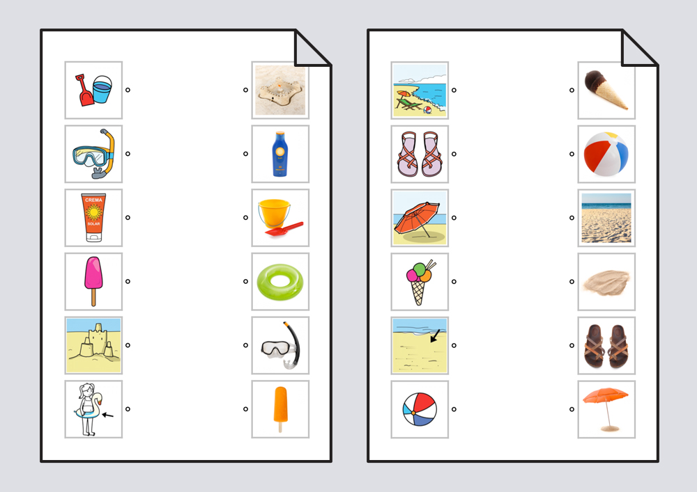 Actividad para identificar y relacionar el pictograma y la fotografía correspondiente sobre vocabulario del verano.