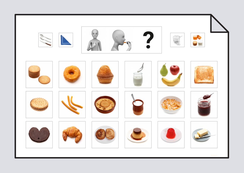 Los tableros de comunicación son productos de apoyo básicos que consisten en superficies de materiales diversos en las que se disponen los símbolos gráficos para la comunicación (en este caso fotografías) que la persona indicará para comunicarse.
