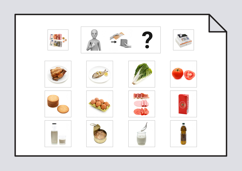 Los tableros de comunicación son productos de apoyo básicos que consisten en superficies de materiales diversos en las que se disponen los símbolos gráficos para la comunicación (en este caso fotografías) que la persona indicará para comunicarse.