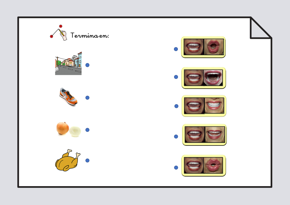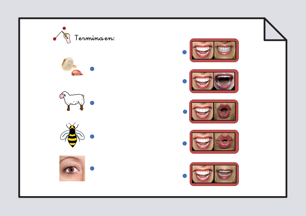 Actividades para trabajar la conciencia silábica de las sílabas finales de las palabras. Son una serie de fichas donde hay que identificar palabras que terminan por una sílaba final determinada.