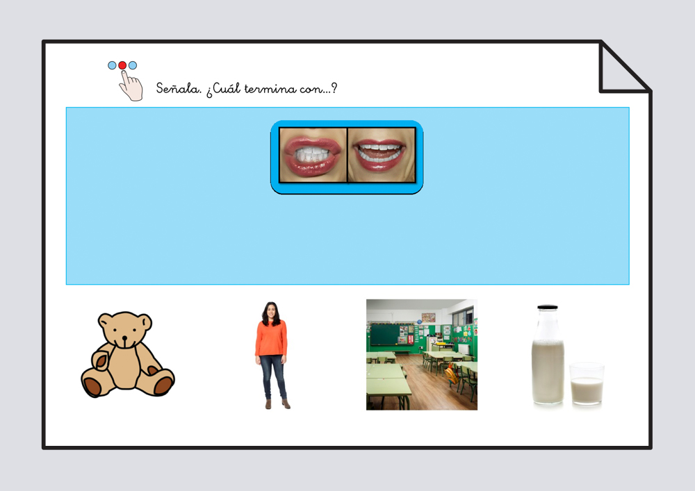 Material interactivo para trabajar la identificación de palabras con una determinada sílaba final, completar palabras con una determinada sílaba final y clasificar palabras según su sílaba final.
