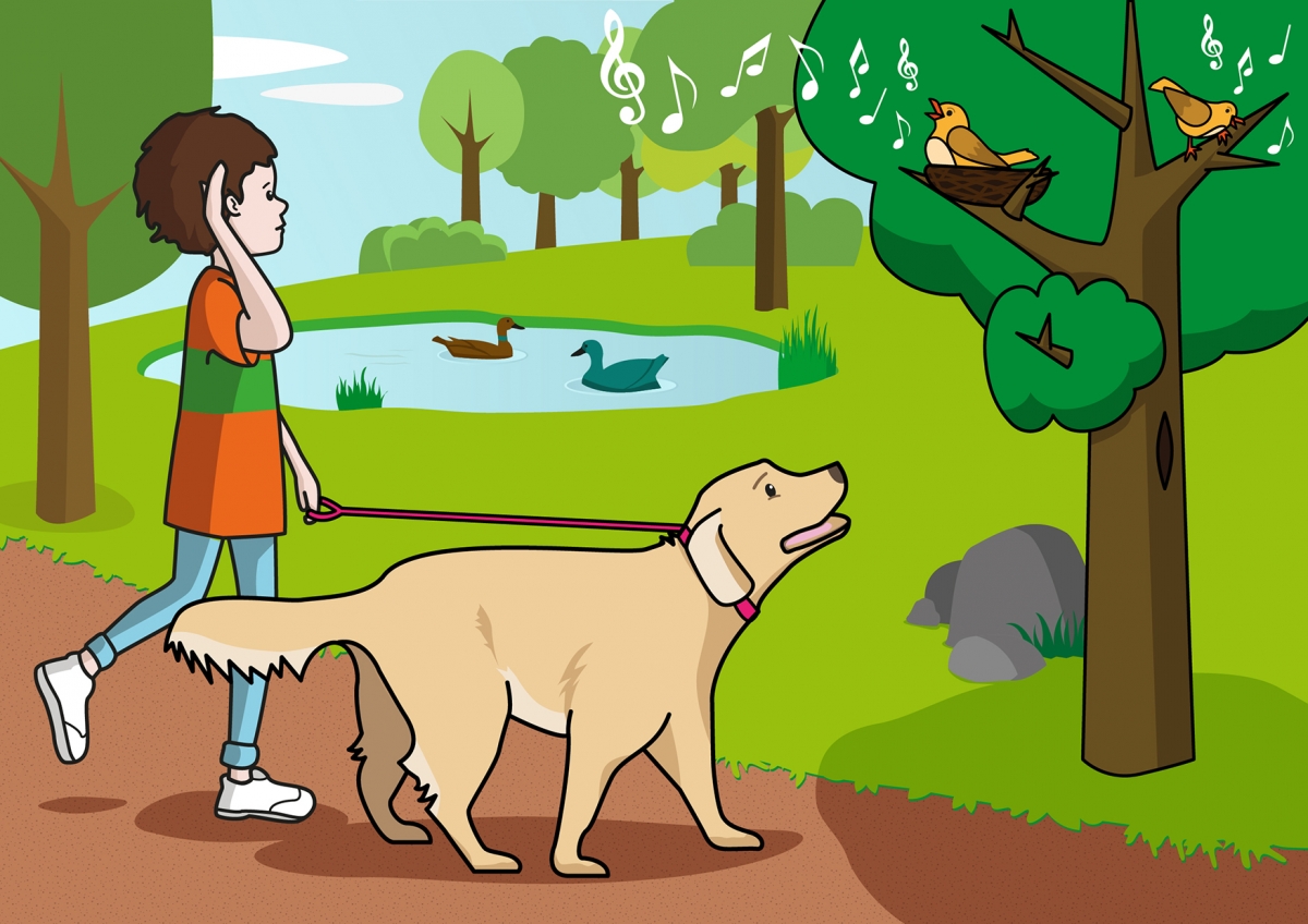 acerca de "El niño y el perro oyen cantar a los pájaros"