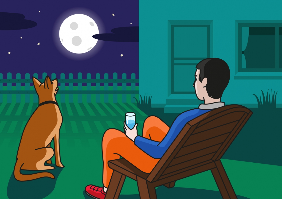 El papá y el perro miran la Luna