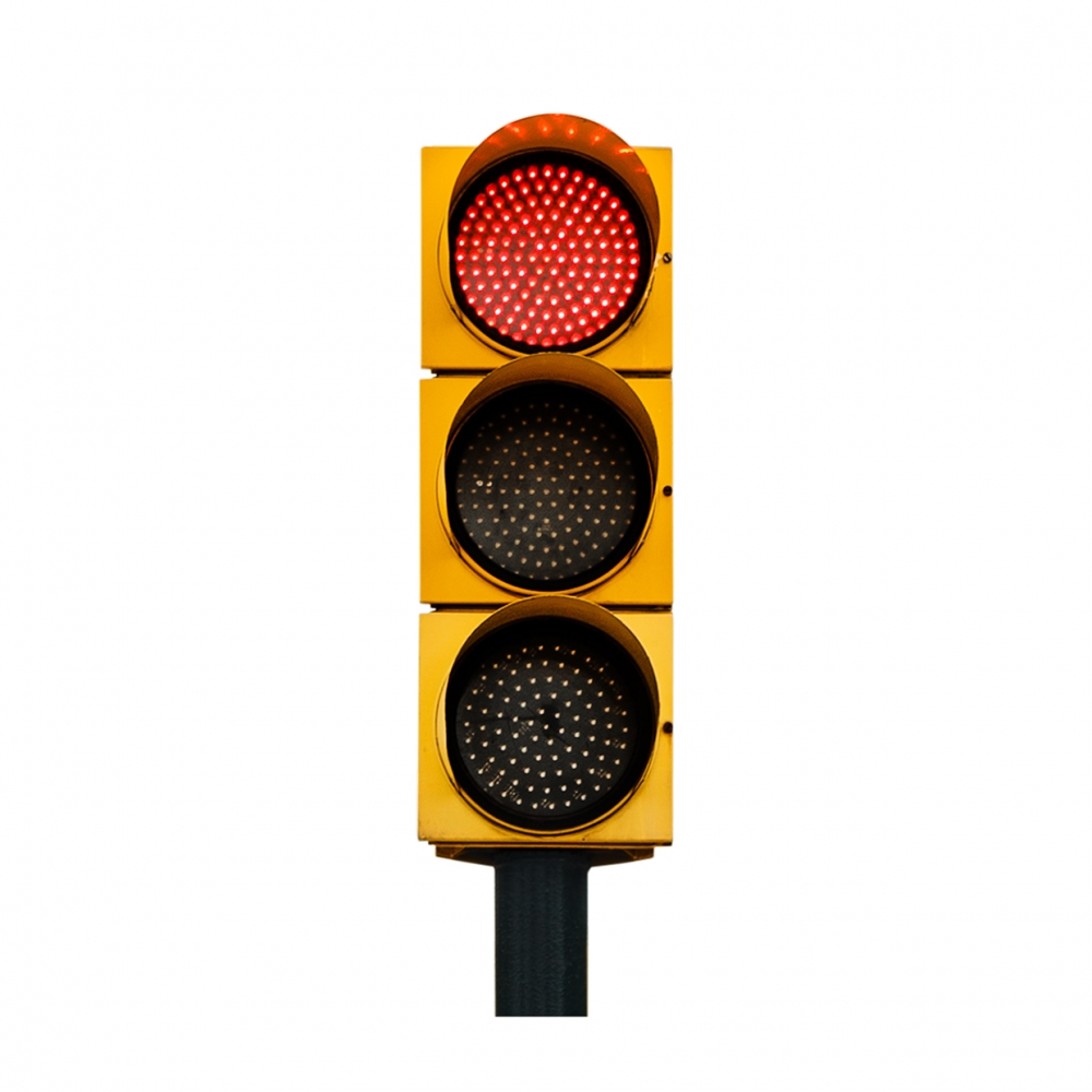 Imagen en la que se ve un semáforo con la luz roja iluminada